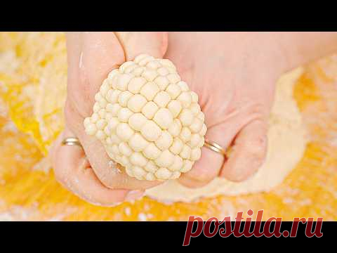 Рука человека держит головку очищенного кукурузного початка над столом с кукурузной мукой