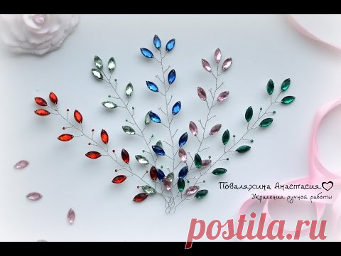 Украшение для волос из бусин и проволоки. Decoration of beads and wire.
