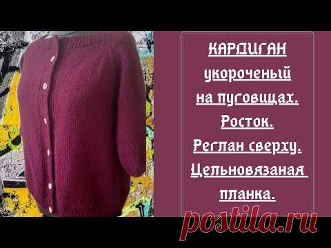 Укороченый кардиган спицами/ Реглан сверху/Росток.
