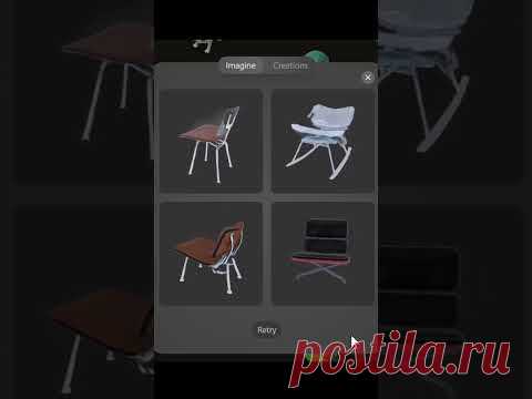 Изображение с интерфейсом приложения, где представлены различные стили стульев на темном фоне. Видны названия стилей: "Imagine", "Crosslink", "Bursty"