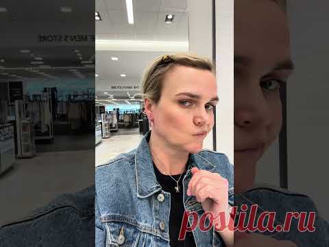 Человек делает селфи в магазине. Носит джинсовую куртку и укладку с назад зачесанными волосами. На заднем плане видны витрины магазина.