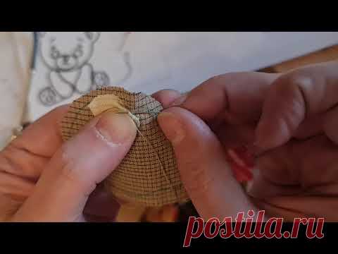 На изображении крупным планом показан процесс ручного шитья. Видны чьи-то руки, которые работают с иголкой и тканью. Возможно, ведется работа по созданию какого-либо изделия из ткани или ремонт одежды.