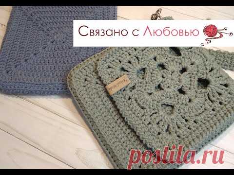Сумка " Планшет " из хлопкового шнура .Бабушкин квадрат . МК