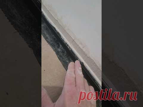 На изображении видна рука человека, касающаяся стыка между двумя поверхностями, вероятно, в контексте строительства или ремонта. Один из участков имеет черную окантовку, что может указывать на наличие герметика или изоляционного материала.