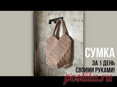 Вязаная сумка крючком, за 1 день, своими руками, из трикотажной пряжи