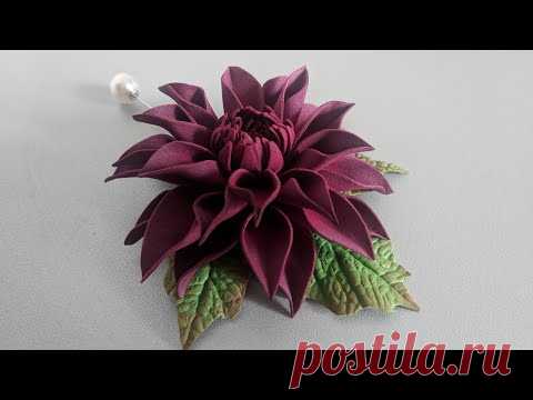 Георгин из китайского фоамирана 1 мм для плоской основы. Брошь, резинка, заколка, повязка DIY.
