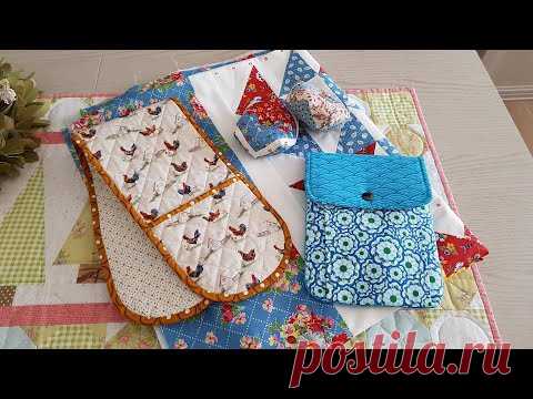 Собрала топ для одеяла, сшила прихватку, сумочку и игольницы. Пэчворк. Лоскутное шитьё.