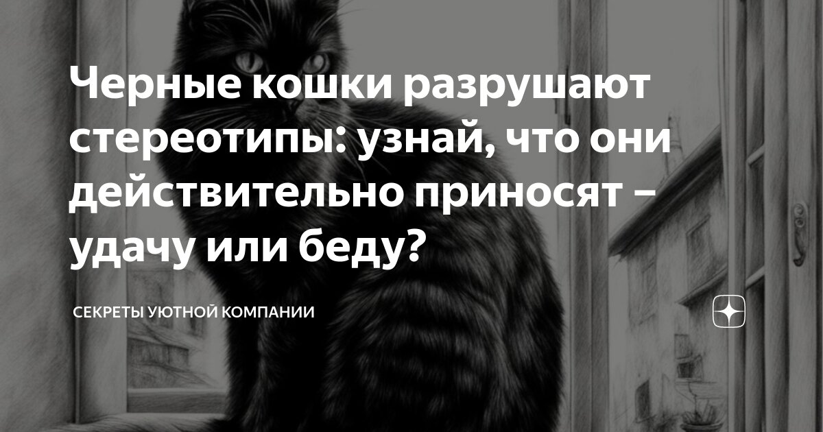 Черные кошки разрушают стереотипы: узнай, что они действительно приносят – удачу или беду? Статья автора «Секреты уютной компании» в Дзене ✍: Примета о черной кошке, перебегающей дорогу, является одной из самых известных и широко распространенных во многих культурах.