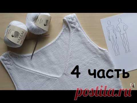 ***Платье (или майка) спицами*** 4 ЧАСТЬ (Боковые и плечевые швы, обработка горловины по спинке)