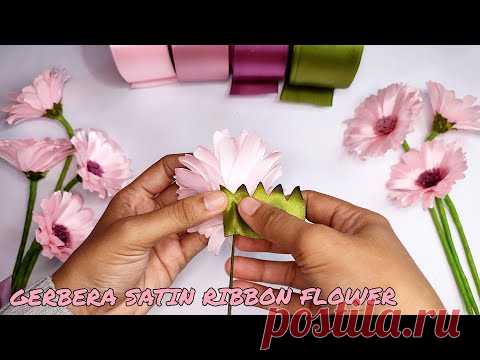 DIY | How To Make Gerbera Flowers From Satin Ribbons | Tutorial Membuat Bunga Dari Pita Satin