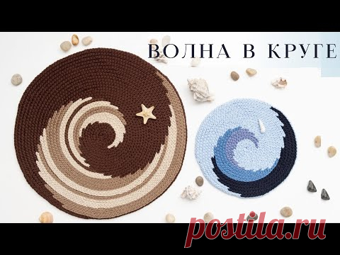 волна на круглой салфетке или ковре из остатков пряжи и не только крючком из шнура или трикотажной от Материнство и Вязание niki_knit