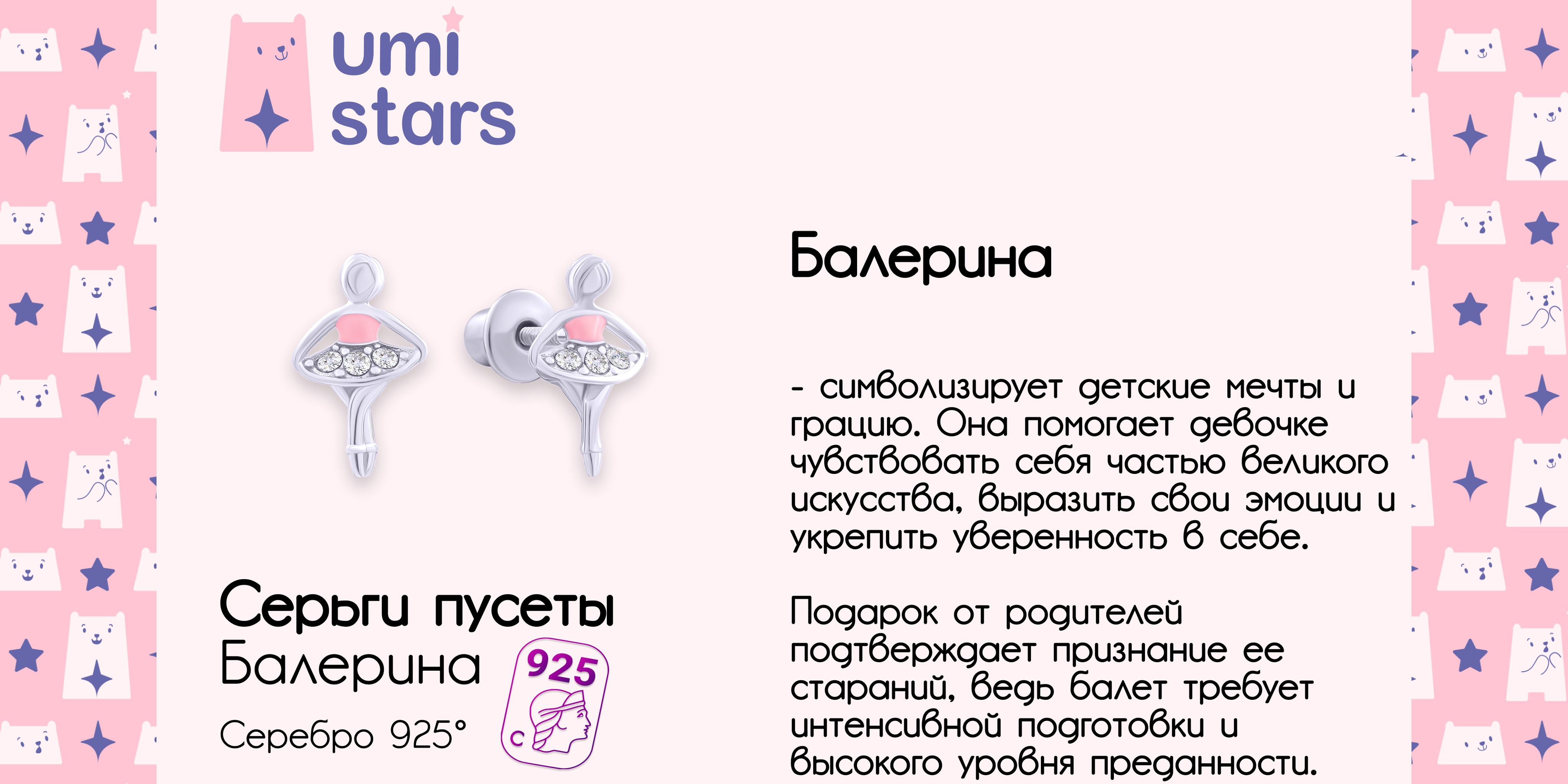 серебряные серьги пусеты для девочки 5 - 12 лет балерина umi stars - купить с доставкой по выгодным ценам в интернет-магазине OZON (212117995)