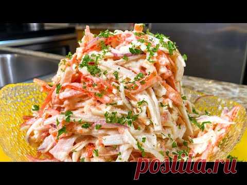 Вкусный салат с крабовыми палочками. Новогодний салат "КРАСНОЕ МОРЕ" сочный, быстрый, крабовый салат