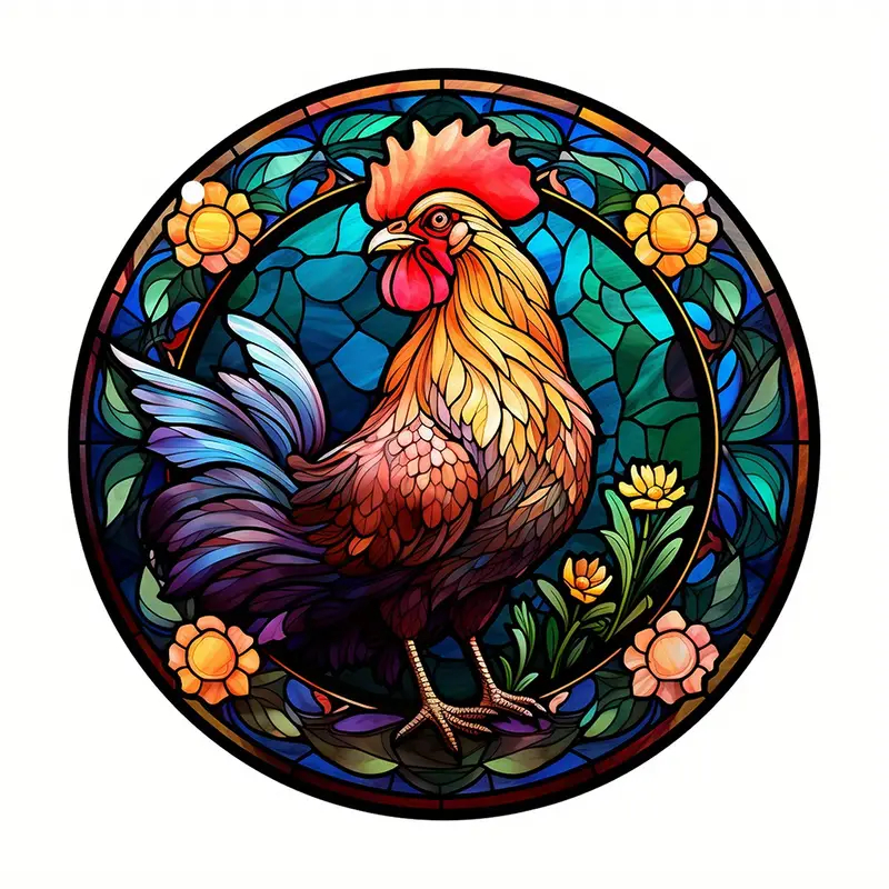 1 Pieza Colgante Ventana Manchada Gallo Granja Vidriera - Temu Chile