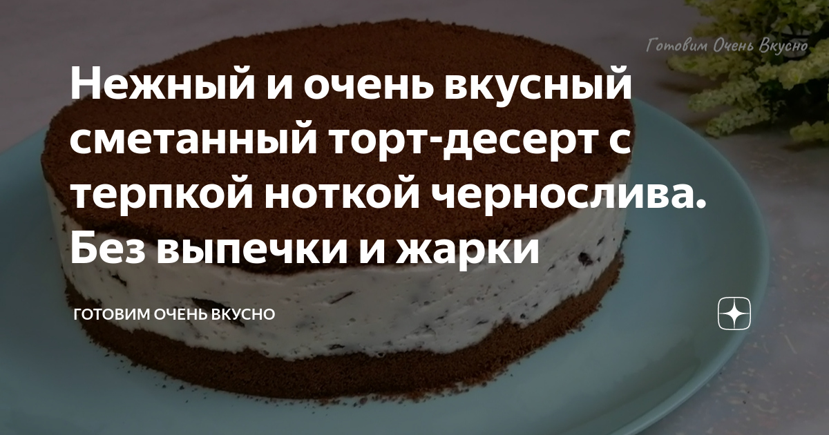 Нежный и очень вкусный сметанный торт-десерт с терпкой ноткой чернослива. Без выпечки и жарки Статья автора «ГОТОВИМ очень ВКУСНО» в Дзене ✍: Друзья, привет! Предлагаю приготовить вкусный торт-десерт без выпечки на основе сметаны. Такой десерт готовится очень быстро.