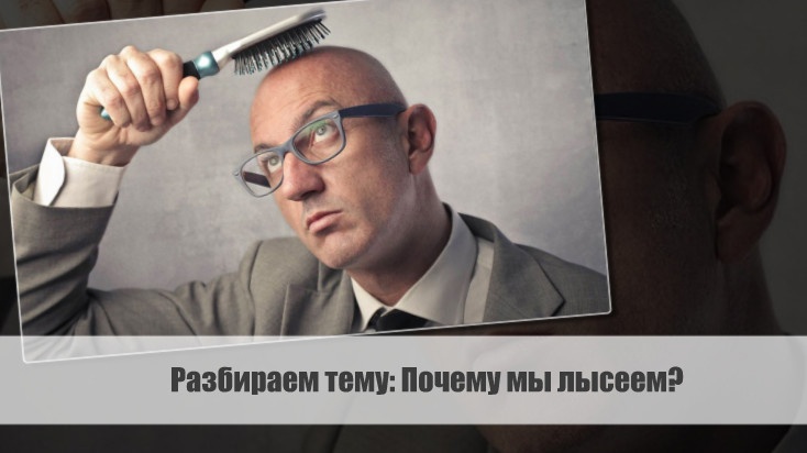 Мужчина в костюме и очках смотрит в зеркало и расчесывает свои волосы. На изображении также видно отражение его лица в зеркале и текст "Разбираем тему: Почему... protekta.ru"