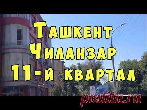 Изображение с текстом на русском языке, который гласит: "Ташкент Чиланзар 11-й квартал". На фоне видны здание и деревья под ярким солнечным светом.