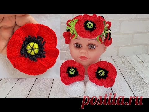 мак вязаный крючком/crochet flower/gehäkelte Blume