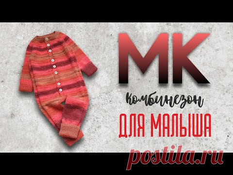 На изображении представлен розово-оранжевый детский комбинезон, выложенный на сером фоне. Слева от комбинезона красные буквы "МК", под которыми написано "комбинезон для малыша" и на нижней части изображения веб-сайт "poshivai.ru".