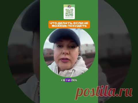 На изображении представлена женщина, которая снимает себя на камеру с видом на улицу. Сверху отображается текст: "Что делать, если не можешь похудеть". На изображении также имеется QR-код и логотип "positila.ru". Нижняя часть изображения содержит текст: "а до 24кг сбрось".