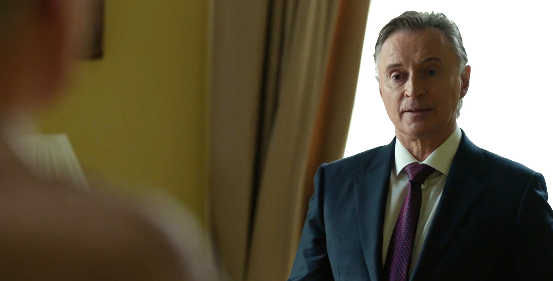 На изображении мужчина в костюме и галстуке, он стоит в комнате и смотрит напротив, в сторону другого лица, не в фокусе. Изображение с водяным знаком "postila.ru".