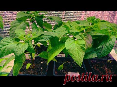Рассада перца в контейнерах для рассады на фоне светоотражающей поверхности