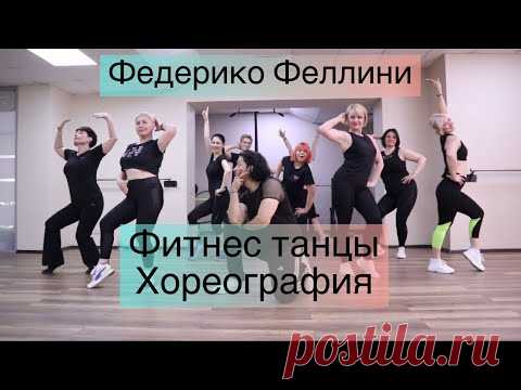 Группа людей занимается фитнес-танцами в спортивном зале. Инструктор и участники выполняют танцевальные движения. В помещении светло и просторно. На заднем плане зеркала, отражающие группу.