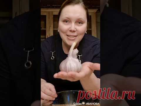На изображении женщина держит чеснок. Она улыбается и смотрит на камеру. Женщина находится в помещении, за ней видны кухонные шкафы.