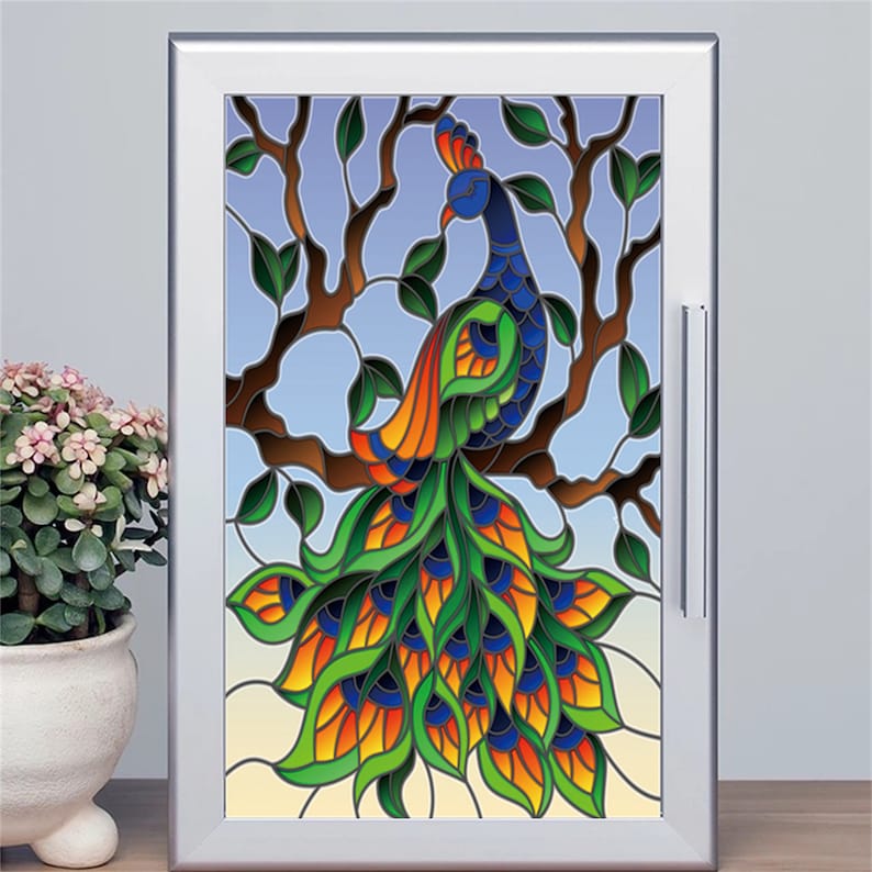 Película de ventana esmerilada de pavo real personalizada, antimirada, privacidad, películas de vidrieras estáticas 3D, pegatina impresa, espejo, decoración de Color no adhesiva - Etsy Chile