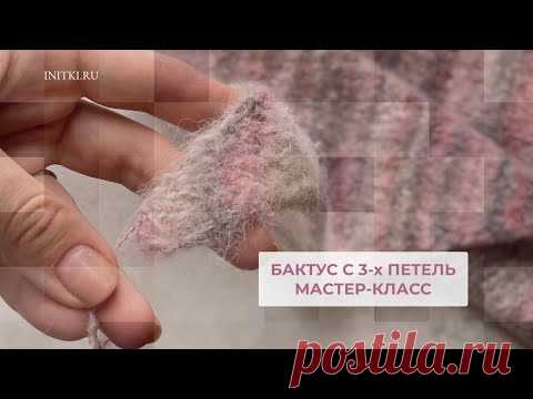Бактус с трех петель - мастер-класс вязание спицами треугольный шарф