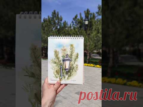 Акварель на пленере. Быстрая зарисовка. #акварель #линер