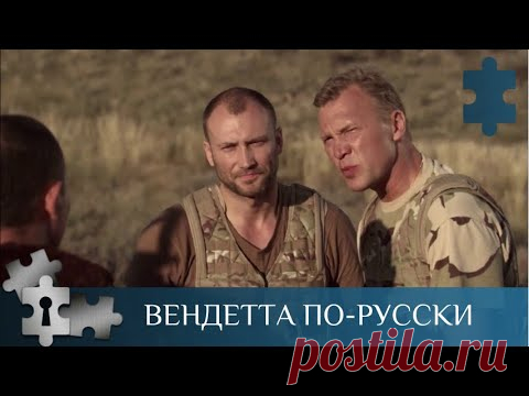 На изображении представлены два мужчины в военной одежде, которые находятся на открытом воздухе, с видимым полевым фоном. Оверлей на картинке содержит текст на русском языке, который гласит: "вендетта по-русски postila.ru" и изображение головоломки с недостающей деталью в верхнем правом углу.