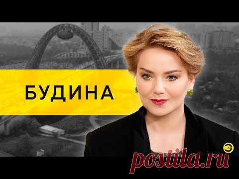 На изображении женщина с короткими волосами, одетая в черный пиджак, с фоном, который смешивает черно-белый и цветной виды городских зданий. Надпись на желтом фоне: "БУДИНА", и логотип сайта "postila.ru" в правом нижнем углу.