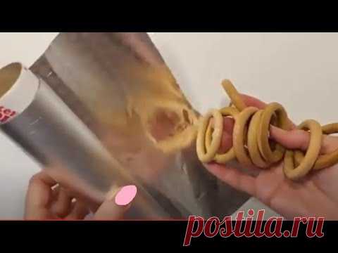 На изображении кто-то наливает в гладкий металлический цилиндр золотисто-коричневый порошок, при этом на второй руке наложены сухарики или крендельки, нанизанные друг на друга. Вероятно, идет процесс приготовления какого-то кулинарного изделия.