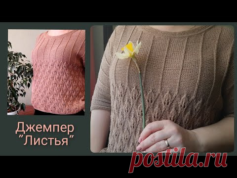 Джемпер "ЛИСТЬЯ" спицами с цельновязаным рукавом/подробный обзор/схема узора/особенности вязания