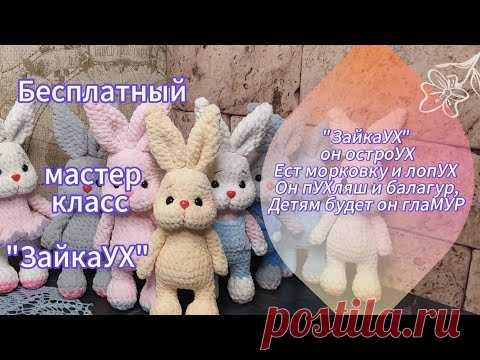 "ЗайкаУх".Бесплатный мастер класс на зайку крючком в 23-24 см.