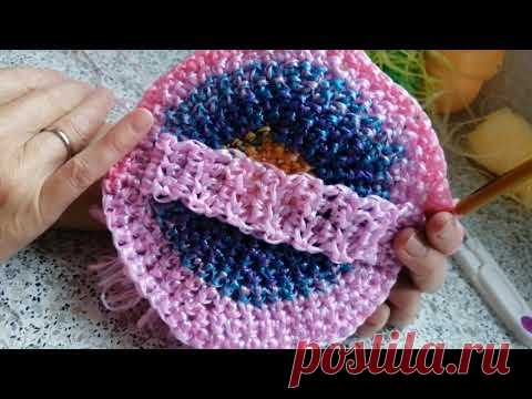 Идея для подарка своими руками. Вяжем круглую мочалку из остатков пряжи.