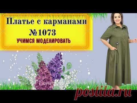Платье С Полукруглой Линией Талии и Карманами со Сборкой № 1073