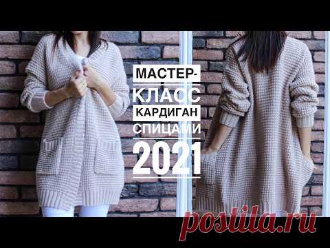 Мастер-класс кардиган спицами на осень! Супер удачная и практичная модель с карманами!