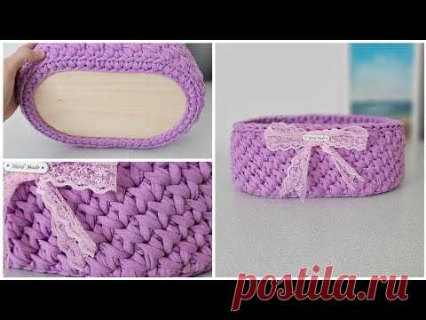 🔥 САМЫЙ ПЛОТНЫЙ УЗОР крючком для больших корзин. Овальная корзина из трикотажной пряжи.
