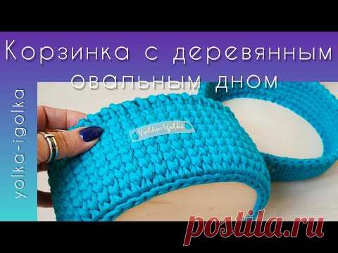 Корзинка из трикотажной пряжи с деревянным овальным дном