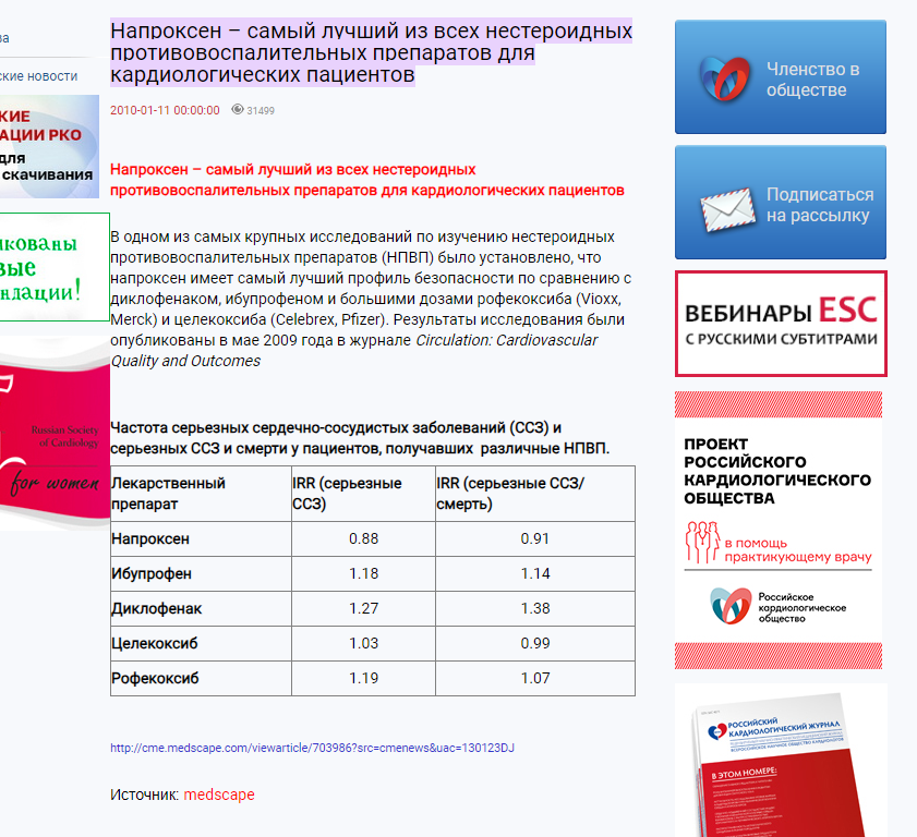 Напроксен – самый лучший из всех нестероидных противовоспалительных препаратов для кардиологических пациентов
