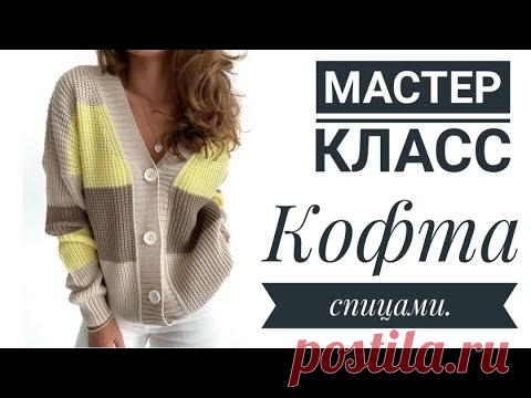 🔥МАСТЕР-КЛАСС💥 Стильная и простая кофта спицами😍#knitting#вязаниеспицами#вязаниесверой#кофтаспицами