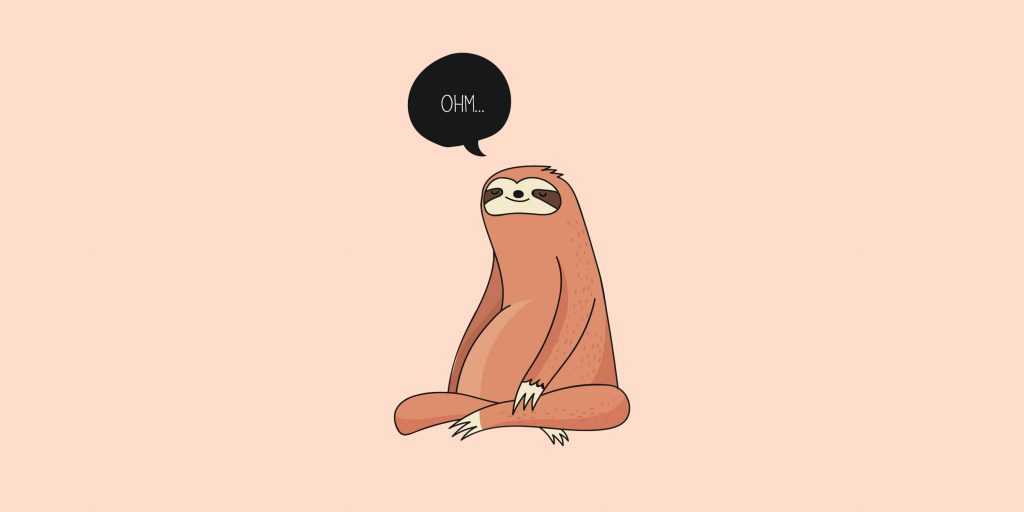 На изображении представлен мультяшный персонаж ленивец, сидящий на светлом фоне. У ленивца выражение лица расслабленное, а над его головой расположен облачко диалога с надписью "ОМЛ", что может быть сокращением от выражения удивления или раздражения. Изображение стилизовано с минимализмом и является иллюстрацией, вероятно, для юмористического контекста.