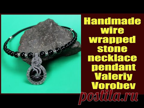 Handmade wire wrapped stone necklace pendant. Handmade wire jewelry Valeriy Vorobev.