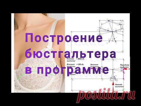 На изображении представлена женщина в нижнем белье слева и схема кроя одежды справа. Надпись по-русски объявляет о "Построении бюстгальтера в программе". Сайт "positiv.ru" находится в нижнем правом углу.
