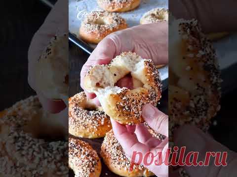 На изображении руки человека, который рвет бублик, посыпанный кунжутными семенами. В фоне видны другие бублики, также обсыпанные семенами кунжута и возможно других видов.
