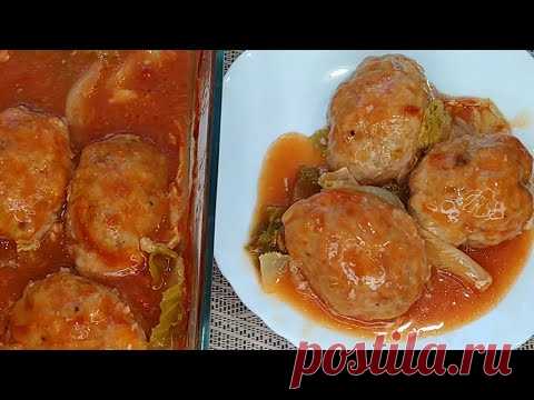 На изображении представлено блюдо, состоящее из тефтелей в томатном соусе, поданных на белой тарелке. Видны луковые чешуйки, добавленные к соусу, что придает ему дополнительный аромат и вкус.