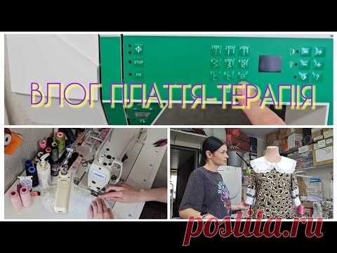 Коллаж из четырёх различных изображений, связанных с шитьём и производством одежды. В верхней левой части изображён элемент печатной платы, на верхней правой — текст "блог платья-терапия". Нижняя левая часть показывает швейные катушки с нитками, а нижняя правая — женщину, работающую с манекеном в одежде.