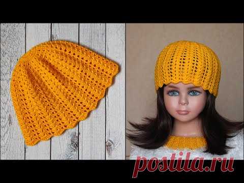 Весенняя шапочка крючком | Шапка крючком для начинающих (мастер-класс)